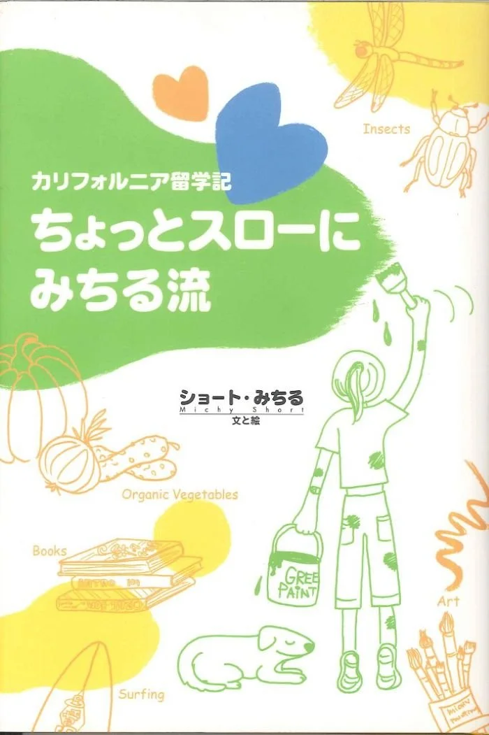 The Japanese title, [カリフォルニア留学記 ちょっとスローにみちる流] translates in English to California Study Abroad Diary : A Little Slow, Michiru Style. The book is written by Michy Short. She was born in Hokkaido in 1980. Her father is American and her mother is Japanese. She moved to the United States with her family in 1983. Her family moved back to Japan in 1985. She spent her elementary school years living in Japan. However, after graduating from elementary school, she decided to move back to the U.S. for her junior high school and high school years.